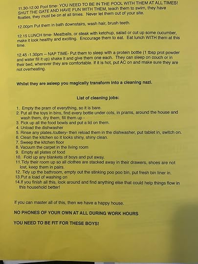 In 2013, I interviewed with an (unbeknownst to me at the time) Scientologist family to be their nanny. They gave this absolutely BONKERS list of responsibilities and now I give it to all of you.