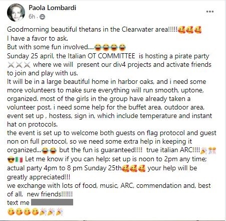 “OTL DK has lost several important mail packets from the 24 March run. We find that OTL had just changed Supercargoes. The new one Connie (Campleman) Stevens was logging her first mail. The DK Post Office or the WW post office or Connie has lost several packets. This flap was not reported by Wayne Alkire to Flag and was not given proper attention by Susan Pomeroy. We now, by phone, have the packet numbers still lost and Aides must make them up again for the next courier. This of course calls for a severe reshuffle of lines and personnel. We must be very accurate on mail slips, relays and posting. A fantastice scramble can occur and the work of a lot of executives can be messed up or destroyed. Comm Evs are being convened on S. Pomeroy, W. Alkire, and C. (Campleman) Stevens. Mail routing will be changed.” — The Commodore, April 23, 1970