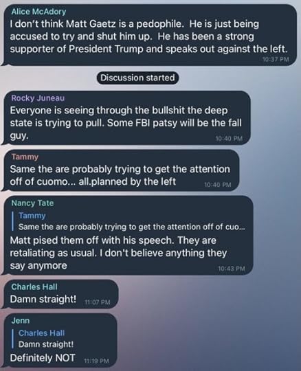 For some reason, QAnon people are refusing to take their dream scenario coming true — a sitting congressman being investigated for child trafficking — at face value. They love Gaetz’s inscrutable double agent story because it sounds like 5D chess.