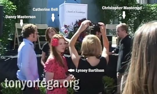 The video then turns to the Scientology celebrities waiting for the event to start. Initially, we can see Danny and Christopher Masterson, Lynsey Bartilson, and then Catherine Bell joins them.