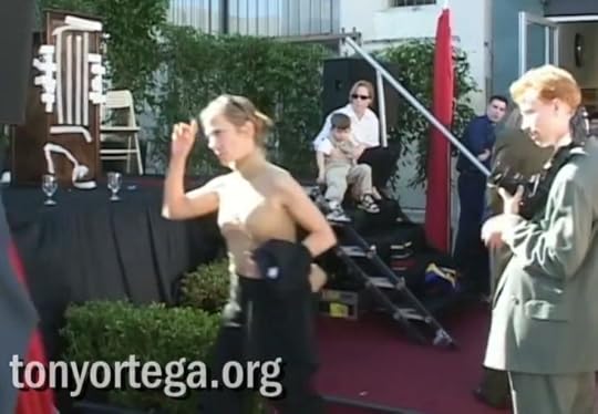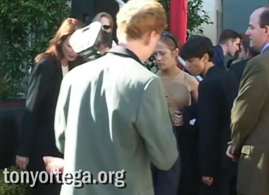 After finishing her speech, Jenna then calls up the other celebs to join her on stage so they can pull the ribbon, officially opening the mission. Tom Cruise bounds up first, naturally, followed by Kelly Preston, John Travolta, Bodhi Elfman, Kirstie Alley, Catherine Bell, Juliette Lewis, and then Eduardo Palomo, a Mexican telenovela star who died in 2003 of a heart attack at only 41.
