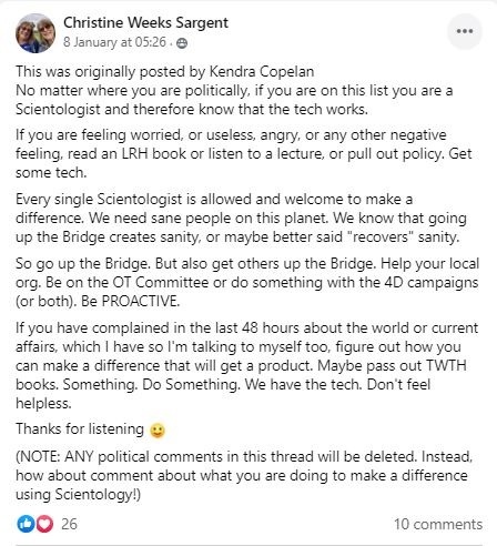 “Wonder why there is a forced vaccination agenda, forced lockdowns and the United Nations agenda to reduce the population of Earth? Why there are scienos or ex-scienos voting and supporting Joe Biden and his human enslavement agenda of forced vaccinations, more Income Tax and LGBT perversions? LRH explains it all on the taped lecture: The Free Being. He explains that at the beginning, spiritual beings created their puppet societies. Then those spiritual beings taught their puppet societies how to entrap other spiritual beings. At the end those puppet societies ended up entrapping all the free beings, including the ones that created them (you). And finally LRH describes the method to reverse this cycle of entrapment and recover the Free Beings. He also describes the structure of the new society that is going to incorporate the Free Beings in harmony with the puppet societies.”