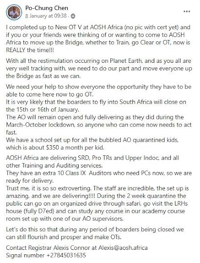 “The Auditing Completions are starting to roll in. With a wow and a hurrah! Some important people have gotten some lovely gains lately. At the other end of it, 2 of those leaving came through it. We have the planet by the tail.” — The Commodore, January 11, 1971