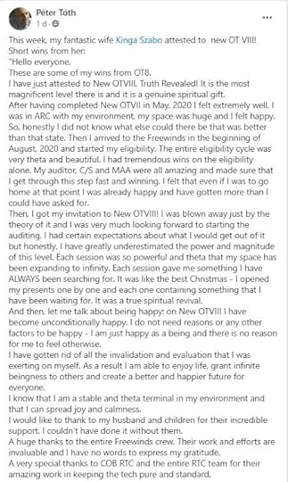 “Wise Scientologists are adopting the advice of Captain Bill Robertson regarding this civilization, that is, “Do not support the Old Civilization.” They just need to take the next step. That is to “Support the New Civilization.” Captain Bill Robertson already set an admin structure and definitions for that New Civilization. Examples: The monetary standards is going to be the value of an auditing intensive. Note: It should be noted that Donald Trump, just like Ronald Reagan before, does not fit into the parameters of the Old Civilization.”