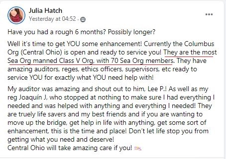 Seventy Sea Org staffers at an Ideal Org in Columbus, Ohio? Well now, maybe it isn’t so far-fetched that Kansas City has also become a Sea Org Org, and Scientology needs housing for its dedicated lifers who make pennies an hour.