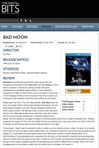 Excellent review of the new Blu Ray release of BAD MOON, my Warner Bros. werewolf movie, on The Digital Bits.