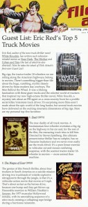 My latest novel WHITE KNUCKLE is a road thriller about truckers, so here’s a list of my top five truck movies on FlickAttack.
