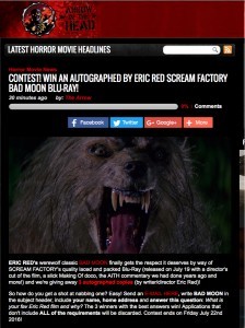 “ERIC RED’s werewolf classic BAD MOON finally gets the respect it deserves by way of SCREAM FACTORY’s quality laced and packed Blu-Ray (released on July 19 with a director’s cut of the film, a slick Making Of doco, the AITH commentary we had done years ago and more!) and we’re giving away 3 autographed copies (by writer/director Eric Red)!”