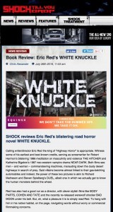 Terrific review of my road thriller novel, WHITE KNUCKLE, from Shock ‘Till You Drop.
