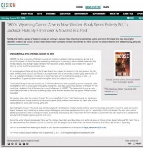 NOOSE, the first in a series of Western novels set entirely in Jackson Hole by acclaimed author and horror filmmaker Eric Red, has been released by Kensington Publishing in Mass Market Paperback and Kindle editions. Due to high reader demand from advance orders, NOOSE was already in its second printing before its official publication date.