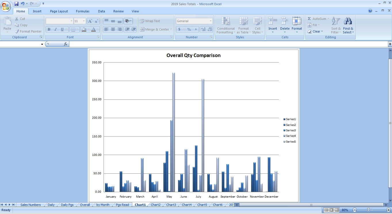 I can also take all of this and be able to provide the CFO (Hubs) with answers to any questions he might ask pertaining to book sales. He doesn't ask, but it's there if he does. Sometimes, I just blurt out stuff like 'hey, I reached 3000 books sold this morning'.* Or I show him the graphs when compare sales by month or by year. Because they're pretty.