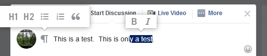 If you hover over the 'paragraph marks' symbol, you get the opportunity to change the format to Header1, Header2, bullets or numbering, and embedded quotes. If you select text, it gives you the opportunity to Bold or Italics the selected type. I think this is only in Group posts, but I'm not sure.