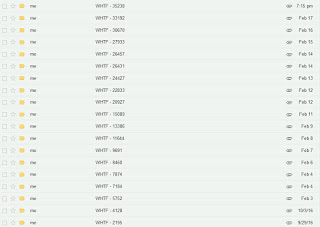 Screenshot from my email where I've mailed the file to myself every night.So, you can see the progression on WHTF (Wish Hits the Fan). I started out the month with the 4128 words I'd left off on back in October '16, which I'd started back in September. I sat down on February 3rd - which was when I'd finally decided what book I was going to work on - and was off to the races. I started out slow because I wasn't quite certain where I was going, but as I went along, the word counts jumped. Almost every night, I sat my ass here and wrote something. (Missed three days, which ain't bad. The 5th, the 10th, and the 18th? I'm claiming those as mental health days. LOL)