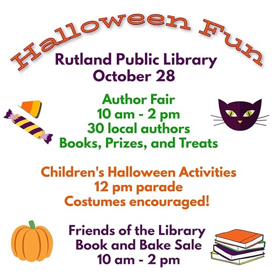 I’m so excited to be joining a bunch of my author friends this Saturday at the Rutland Public LIbrary for a fun-filled day of Halloween activity, including an author book signing/sale!