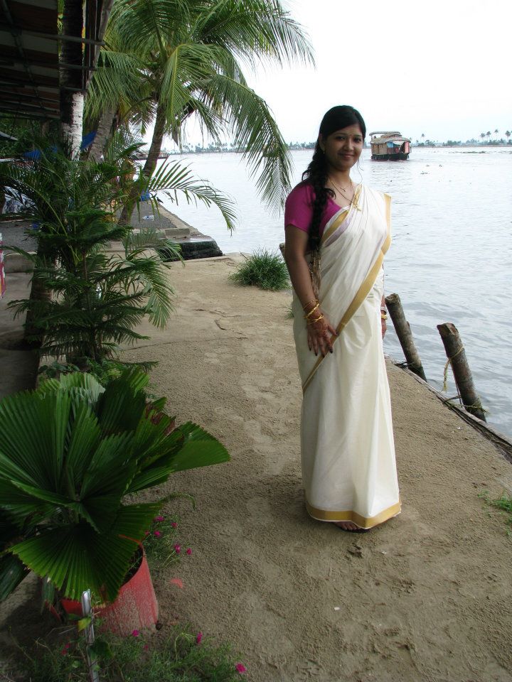 Gold chain, gold bangles, long hair and white and gold saree – the perfect attire of a Malayali woman. It surprised quite a few people in the family but the funniest part was when the local people we met on the way to houseboat started speaking to me in Malayalam. May be they thought I am one of their own!
