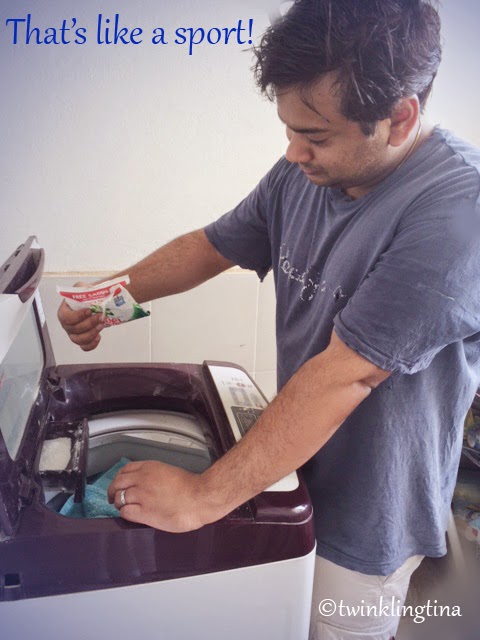 So when I asked Indro to take up the #WashBucketChallenge he was more than happy to take it up. We segregate used clothes in anyways so that you don’t have too many whites with colored clothes. (You never know when which t shirt might start to bleed!) So it was easy for him to dump the clothes in the machine. He used the new Ariel Matic powder and after half an hour of quick wash our clothes were clean and soft. He was also kind enough to put them out to dry. That is what I feel is chivalrous in a man when he wants to help out his lady in every way possible. You don't need to do a lot, you just need to have the will!
