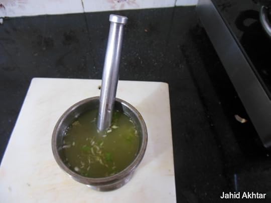 Method:Prepare Ginger-Garlic-Green Chili paste. Peel the ginger and garlic. Add them to grinder or blender together with the chopped green chilies. Grind it into a paste. When grinding process is almost done add water to it.