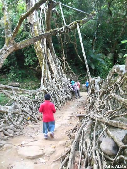 It was time to experience the Living Root Bridges. We enjoyed a wonderful trek, about 1 or 2 km to a neighboring village, Riwai. We reached the spectacular natural bridge that makes a pathway across a stream, making it easy for villagers to commute.