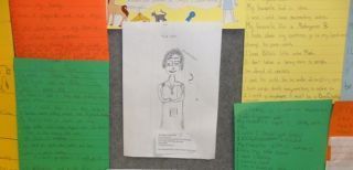 And the best part of my stay… I did some work at Derby District High where my friend teaches. It was a great privilege to work with the students there. You can see some of the fantastic stories in the pictures. (See a drawing of me in the picture too – thanks to the artist – I love it!)