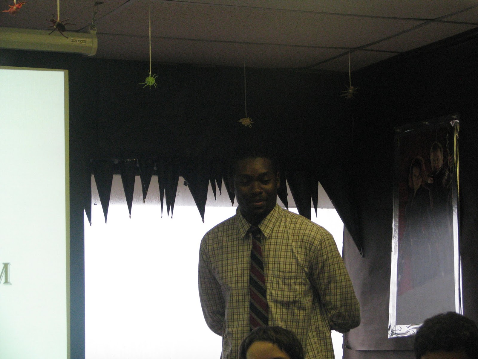 Hoy there! Today was the first part of my two-part presentation on creative writing at my not-so-local library! It went well, it went well. There was darkness and there was grey skies, there was soda and cupcakes, there was a projector, a presenter, and prestige! My loyal assistant (sister) managed to snag a picture or two. (I apologize ahead of time; they're a bit dingy.)