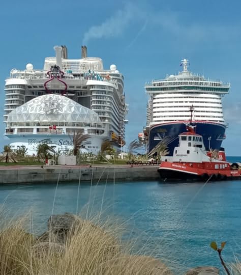 The Celebration ship is the largest in Carnival’s fleet. At capacity, it can accommodate 6,5003 passengers plus 1,735 crew members. The enormous size impressed me as we passed numerous smaller cruise ships along the way. However, when we docked in port at St. Martin next to the largest cruise ship in the world, Wonder of the Sea, I had to laugh.