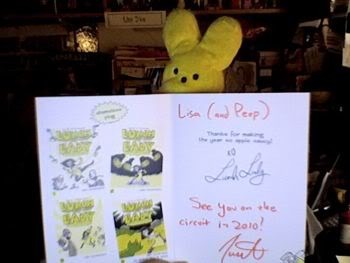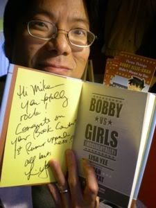 We had a wonderful time talking to the crowd of 23,876-ish people. And what was really fun was afterward the library held a raffle for free Lisa Yee books!