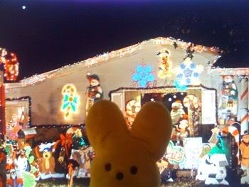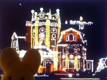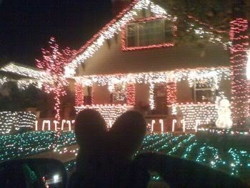 Both put her in the holiday spirt, so I took a break from writing and we went on a tour of highly decorated houses. Guess which one is ours????
