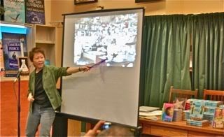 It was standing room only and we had about 100 people show up. (See, you say "donuts" and they will come.) I spoke first and gave away top secret secrets about how the book was written . . .