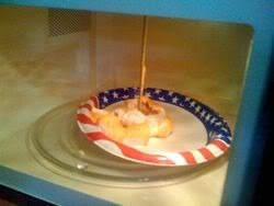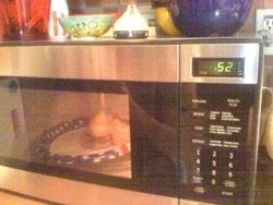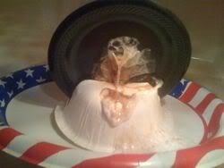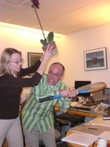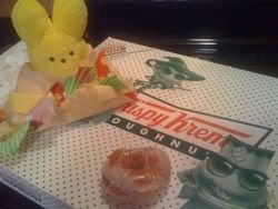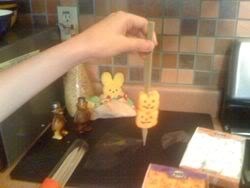 In the past we've also done this sort of thing. This year, we thought . . . hmmmm . . . wooden spikes . . . through a Krispy Kreme Donut . . .