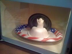 That was okay, but then Son thought . . . hmmmm . . . taping a Peep to a plate . . .