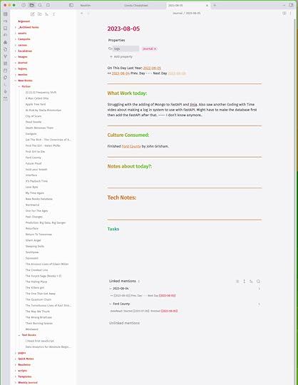 Obsidian extends its versatility beyond journaling, catering to my passion for reading books and watching television shows. With its template-based system, I can easily add new entries for books and create a database of my literary journey.