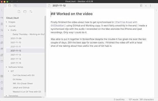 iCloud Sync and GitWhat I think I’m going to do is to use iCloud synchronisation as the main way to keep everything up-to-date across my Apple system. Then what I will do as a backup and as a separate thing is to use get locally on my Mac. I’ll just use the Mac to create a Git folder which looks at what’s going on in Obsidian. I can either use the terminal to do this or I’ll use GitKraken. this way I’ll get the ease-of-use of the synchronisation through iCloud and I’ll get the versioning available from Git. I will probably still use Drafts as my way to input text into any of the devices. I’ll just have to create an action which puts the text into Obsidian in the correct place.