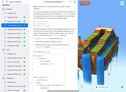 Swift PlaygroundsThis application from Apple has been around for a while. Just recently had an update which allows you to create applications to the point of being able to submit them to the Apple App Store. It’s also been updated to use the latest Swift code and it has excellent teaching materials. When you first look at this you might think it is more for children to learn coding. There are the Learn to Code Playgrounds which have some very simple coding problems to solve. You get a bouncing cartoon figure in a small environment and you have to make it move around and complete certain tasks. These coding problems start simple and gradually get more complex. Because there is such a high level of interactivity and an extremely visual learning experience I have found them to be excellent to learn the basics of thinking like a programmer. I really got the concepts of for and while loops by solving the game like programming challenges. It was fun too and it always helps to have some fun while learning new things.