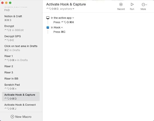 It’s a fairly good interface although I think I can improve it by making keyboard shortcuts to fit on top. I could use KeySmith to create a shortcut which then runs the keyboard shortcuts to do specific jobs with Hook. Instead of having to activate Hook and then use another keyboard shortcut to either collect the link or to paste the link I could do it with one keyboard shortcut. Maybe I could even find a way to use Better Touch Tool instead of a keyboard shortcut to get things started.