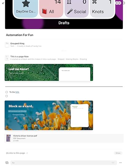 If you’re all in with Drafts and you need to make this work, You’ll be okay. It isn’t pretty and isn’t particularly intuitive. Maybe you only need this type of cross linking once in a while. Why bother getting a new application and learning how to make it work, when you can do this in Drafts. There are other applications more suited to creating a wiki. Other applications to give you better looking notes. You’ll be able to have notes with images and WYSIWYG formatting. This important to us people who re visual learners. I respond to pages where the information is pretty as well as useful. Easier to commit to my memory. My preference is to keep Drafts as the application to start with text. Drafts is the application to capture your ideas in the form of words and decide later where you want to use them. Drafts is a brilliant application which is great for automation. I recommend you use one of these other applications if you really need to create a wiki.
