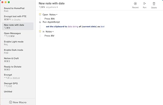 I like to use DayOne as my journal app. If you don’t want to pay a subscription and want something with fewer features but does the job, use this macro. It will open Notes and get the current date to paste to the top of the note. you could also add other text as a template if that suited you.