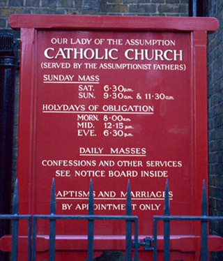 I’m not entirely sure how this came about but even though both my parents are relatively godless people (I couldn’t tell you what, if anything, either of them believe in. It never comes up), but from an early age, my siblings and I went to Mass. My parents were virtually never there – Mum might have come along for the odd midnight Mass, but that’s about it (to be fair, she wasn’t a Catholic, only my father was, and he couldn’t be bothered). This decision to herd a gaggle of six scruffy children to church on a weekly basis was certainly the brainchild of my eldest sister and brother. They can’t have been terribly old themselves but they evidently felt that the religious instruction of their younger siblings was of vital importance. I remember being dragged on a 30-minute route march (30 minutes there and 30 minutes back) every Sunday morning to ‘Our Lady of the Assumption’ Catholic church. I was the second youngest of the six and I must have been fairly small – but able to walk. I remember dreading Sunday mornings – mainly because of (what seemed at the time) the mammoth trek required to get there. But once we had made our way through the lobby, splashed ourselves with a bit of chilly holy water, pushed our way through the throngs and managed to find an entire pew for six, I was always fairly content to be there.