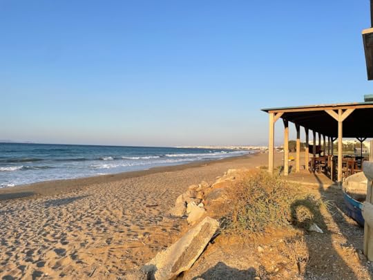 A doua zi, la recomandarea ghidului, m-am dus pe plajă în Amoudara. De dimineață nu era aproape nimeni, iar toate restaurantele erau închise. Abia în jurul orei 11 am reușit să mănânc ceva, dar era deja prea cald pentru a-mi mai fi foame. M-am întors la cazare și am mai ieșit abia pe seară, când vremea era plăcută – în jurul orelor 19-20.