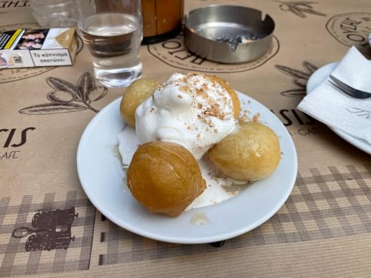 Din fericire, am reușit să mă împrietenesc cu un localnic, angajat al restaurantului Petousis, unde m-am bucurat de deserturi delicioase și conversații interesante. Această legătură temporară a mai înfrumusețat puțin zilele mele de concediu.