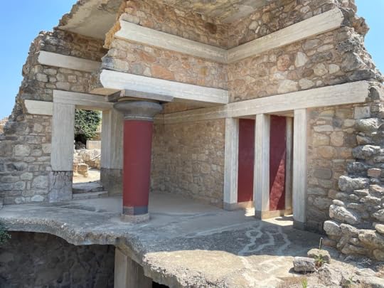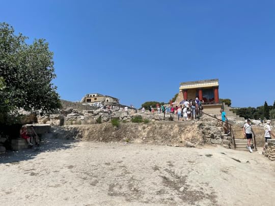 La sugestia acestui nou amic, m-am dus a doua zi dimineață să vizitez Palatul din Knossos. M-am trezit în jurul orei 9, iar drumul cu autobuzul până acolo dura în jur de o oră. Am avut intrarea gratuită și aici, însă erau atât de mulți turiști prezenți încât n-am reușit să văd mare lucru. Am dat câteva ture, am făcut câteva poze, după care am mers la un restaurant din apropiere să mănânc ceva (o jumătate de salată grecească).