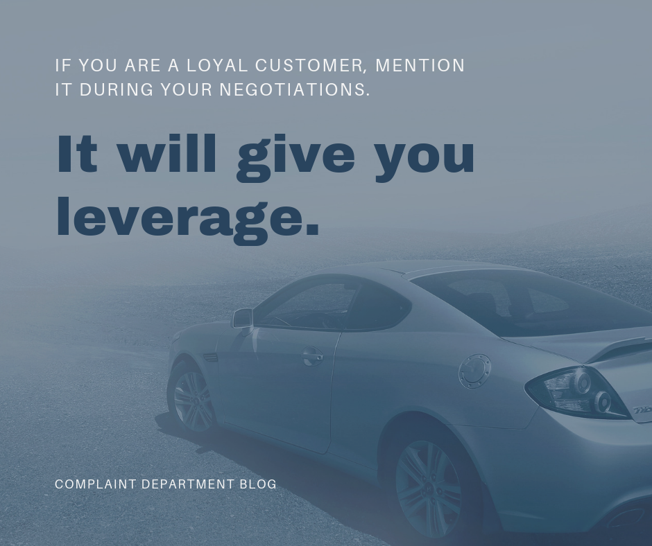 1. If you are a loyal customer, mention it during your negotiation it will give you leverage.