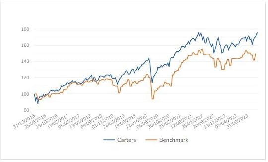 1⃣ Cartera Clásica. Es la más conservadora. Invierte un 13% en renta fija y un 87% en renta variable.