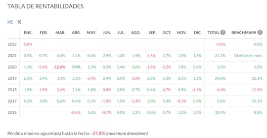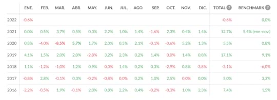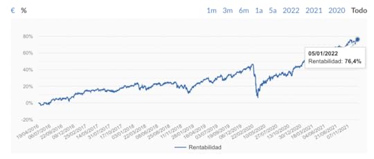 En resumen, llevo llevo casi 6 años invirtiendo con IndexaCapital con una rentabilidad acumulada de 76,0% ( 10.4% anual, volatilidad anualizada 11,6%). (A enero 2022).