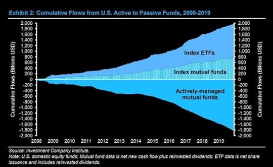 Bajo su punto de vista, «la curva de crecimiento de la gestión pasiva y el comportamiento de los inversores es tÃpico de la creación de burbujas empezando con excitación universal de una gran idea, en este caso, la noción de que los fondos indexados baratos son la ola del futuro de la inversión automatizadaâ.