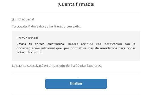 Después de crear tu cuenta en Myinvestor, tendrás que activarla. Al primer email de bienvenida le seguirá otro bajo el título “Necesitamos saber algo más sobre ti” con el que básicamente buscan cumplir con la normativa de prevención de blanqueo de capitales.