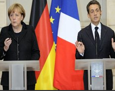 En medio de sus temas triviales, los dueños de la UE se refirieron brevemente a la final del Torneo del Invierno 2011. Aquí Sarkozy muestra los colores del futuro campeón abajo a su derecha, es decir, a la izquierda de Merkel.