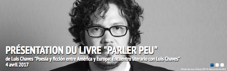 El próximo martes 4 de abril, 17h, charla/lectura a propósito de "Parler peu". Con Alexandra Ortiz Wallner, Jennifer Houdiard y Sergio Coto-Rivel.Présentation du livre Parler peu (Hochroth-Paris, 2017) de Luis Chaves, traduction de Anna Thibert.