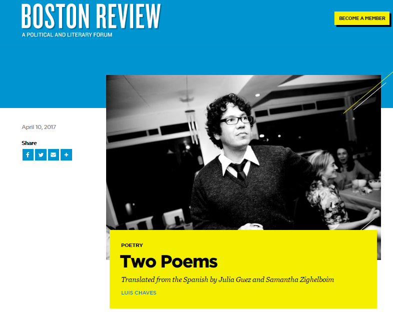 Publican "Falso documental" e "Inventario" en el Boston Review. Traducciones, por supuesto, de Julia Guez y Samantha Zighelboim. ¡Salú!