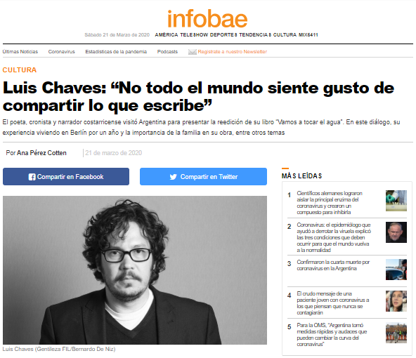 La noche del jueves 12 de marzo, Ana Wajszczuk leyó este texto en la presentación de "Vamos a tocar el agua" en Eterna Cadencia. No soy dado a las lágrimas (prueba mayor de que soy un gran sentimental) pero esa noche, en la antesala de la pandemia, nos (le pasó a Mechi también) arrancó unos lagrimones.