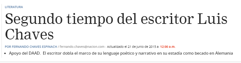 Ayer, primer día del verano aquí en Berlín y Día del Padre allá en Costa Rica, se publicó este artículo del periodista Fernado Chaves Espinach en el suplemento cultural Áncora del periódico La Nación.